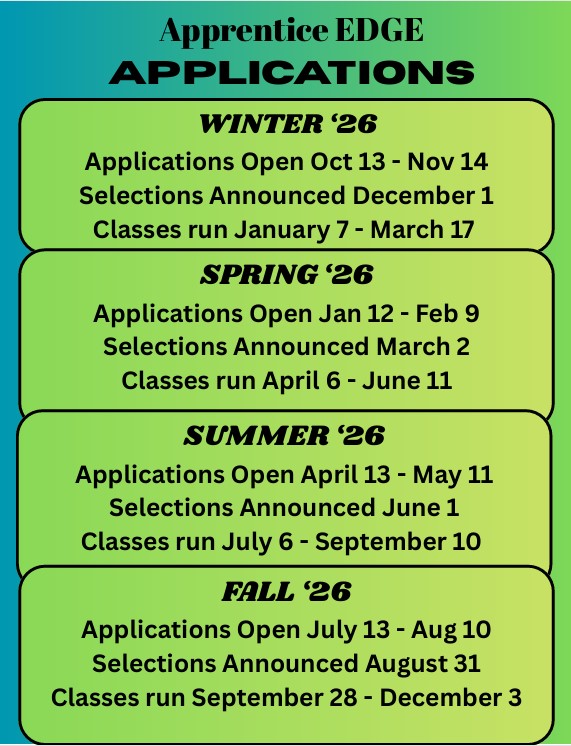 - If you are successful in an EDGE course, The Apprentice School application fee is waived! Be sure to notify Admissions of your EDGE status.